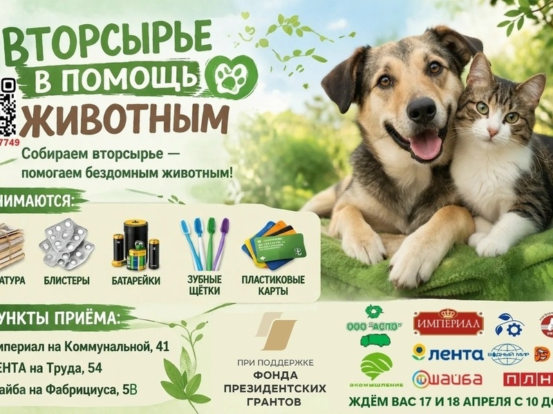 17 и 18 апреля в Пскове пройдёт акция по сбору вторсырья, направленная на поддержку животных. Мероприятие пройдёт с 10 до 15 часов и станет важным шагом в развитии экологической культуры города.