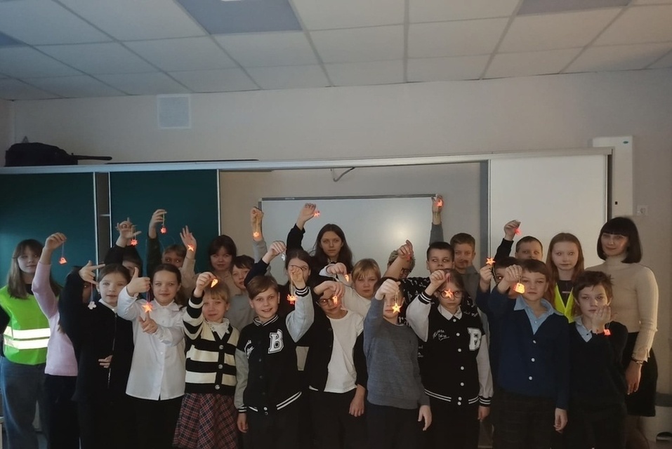 Ученики младших классов вместе с полицией и юными инспекторами движения изготовили фликеры для безопасности на дорогах.