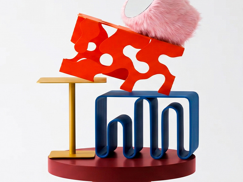 Полина Брагинец, лингвист по образованию, делает ставку на объемные формы, которые при этом кажутся легкими. «Зефирка» — розовый столик с искусственным мехом и стальным основанием: хочется потрогать.